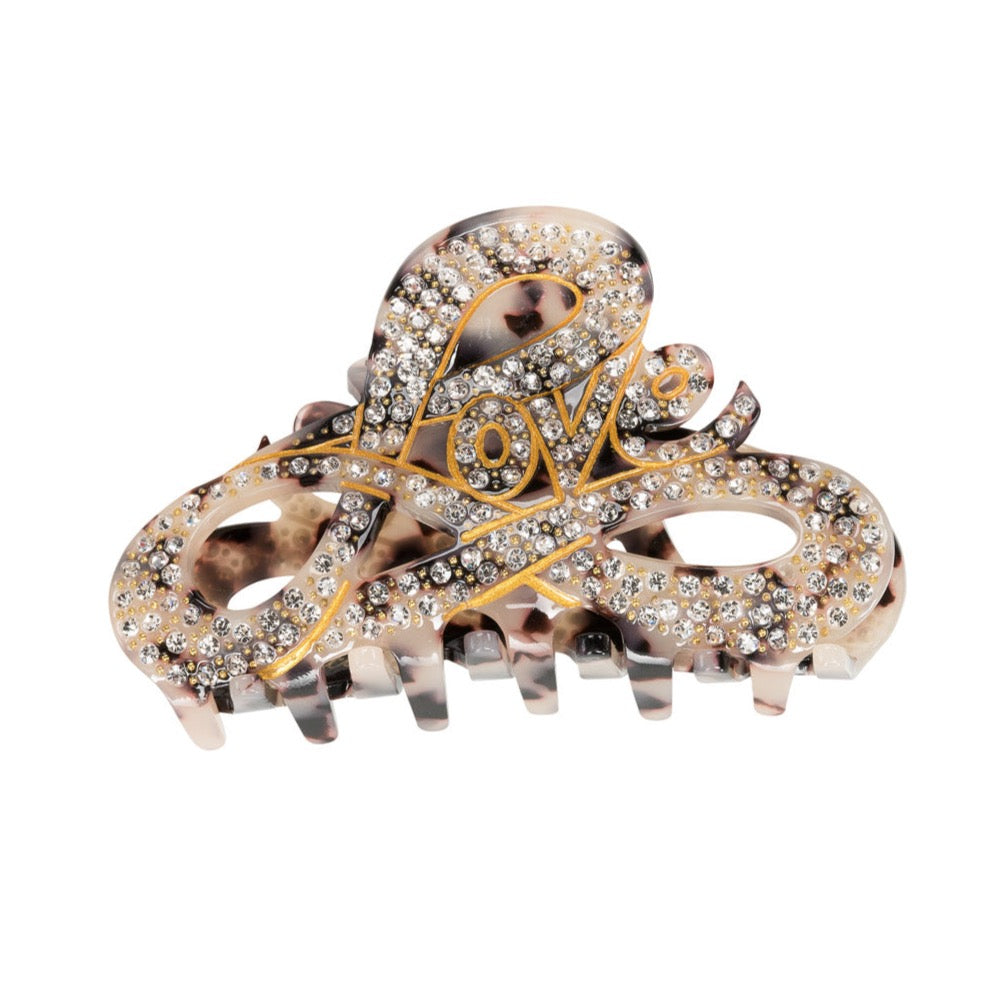 Love is one of our larger claws. It is an exclusive handmade hair claw, of which the rhinestones have been laid in by hand