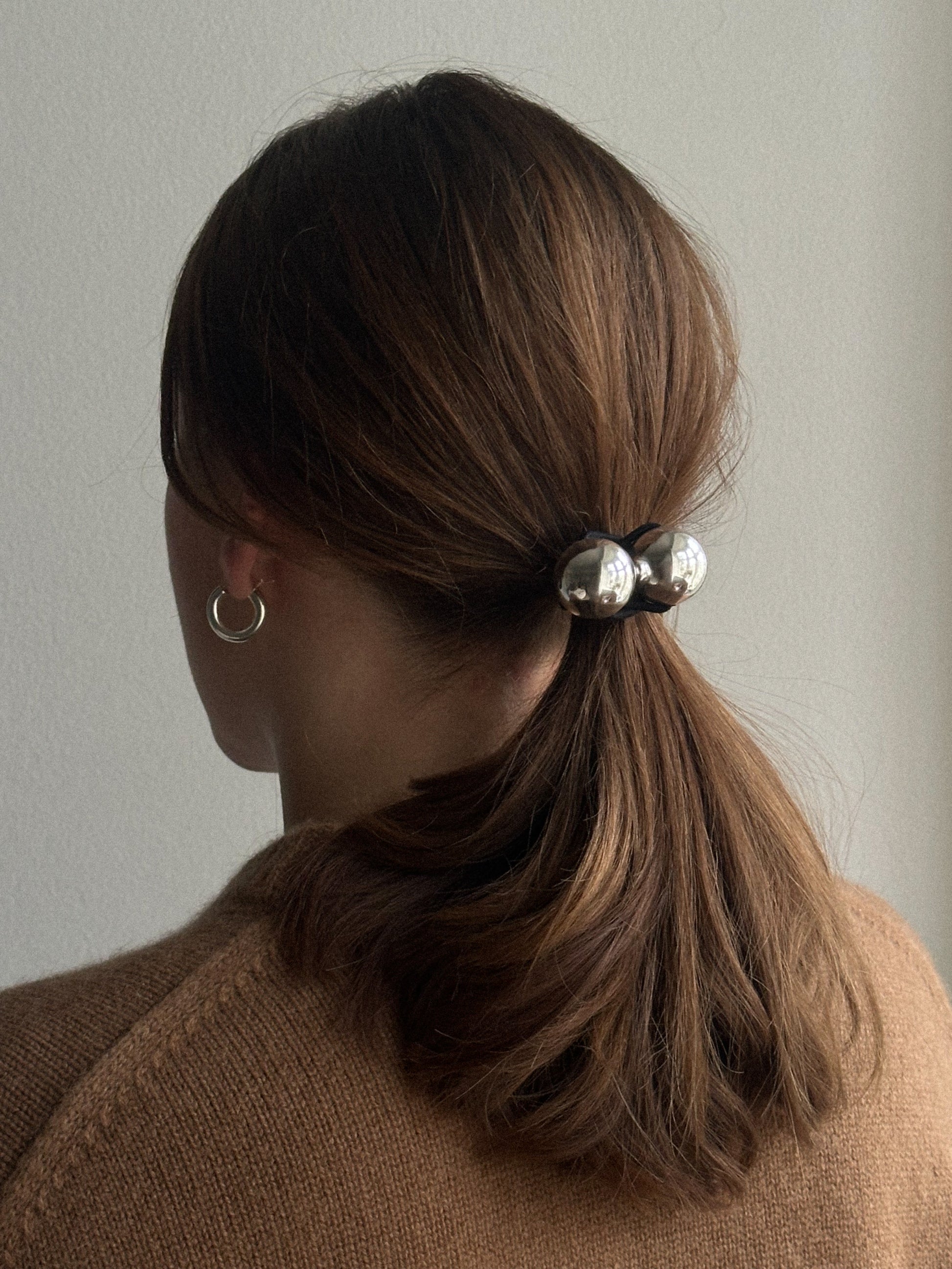 Add a touch of edge to your ponytail with the Amina elastic. Featuring two bold metal balls in gold or silver tones, it's the perfect blend of simple and statement.