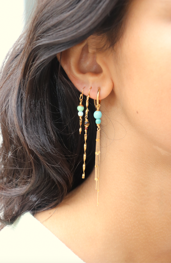 Beautiful earring with glass pearls. We love to mix it with other earrings