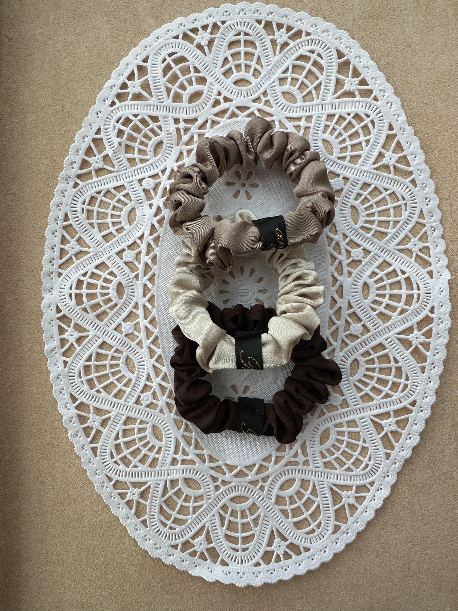 A thinner version of our classic Cali scrunchie. Handmade in a satin fabric. The every day essential for your hair.