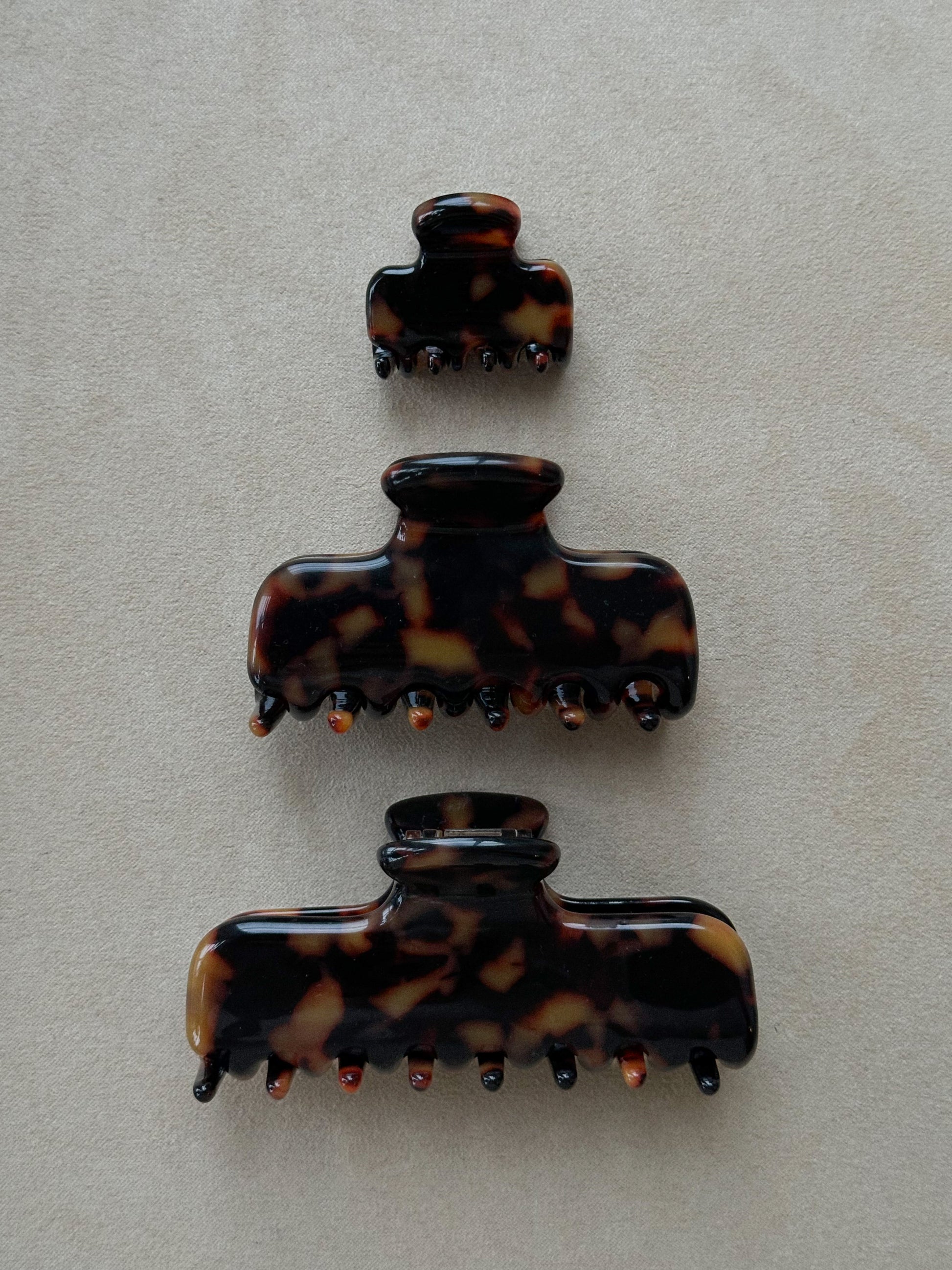 Most of our hair claws and clips are made from cellulose acetate.