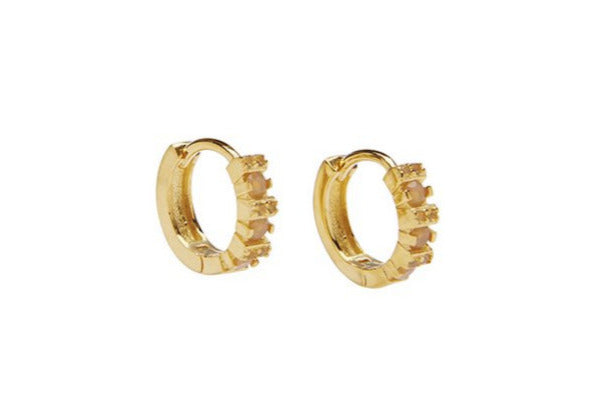 We use culture freshwater pearls, which are created and produced with the help of humans. Tissue or a plastic ball is inoculated into the freshwater mussel to irritate it. The mussel then tries to get rid of the irritation by isolating the mussel in a layer of mother of pearl and thereby forming the freshwater pearl. This process can take up to 2-3 years or longer. Used in Aubree Hoops, Aline Earring and Desiree Earring.