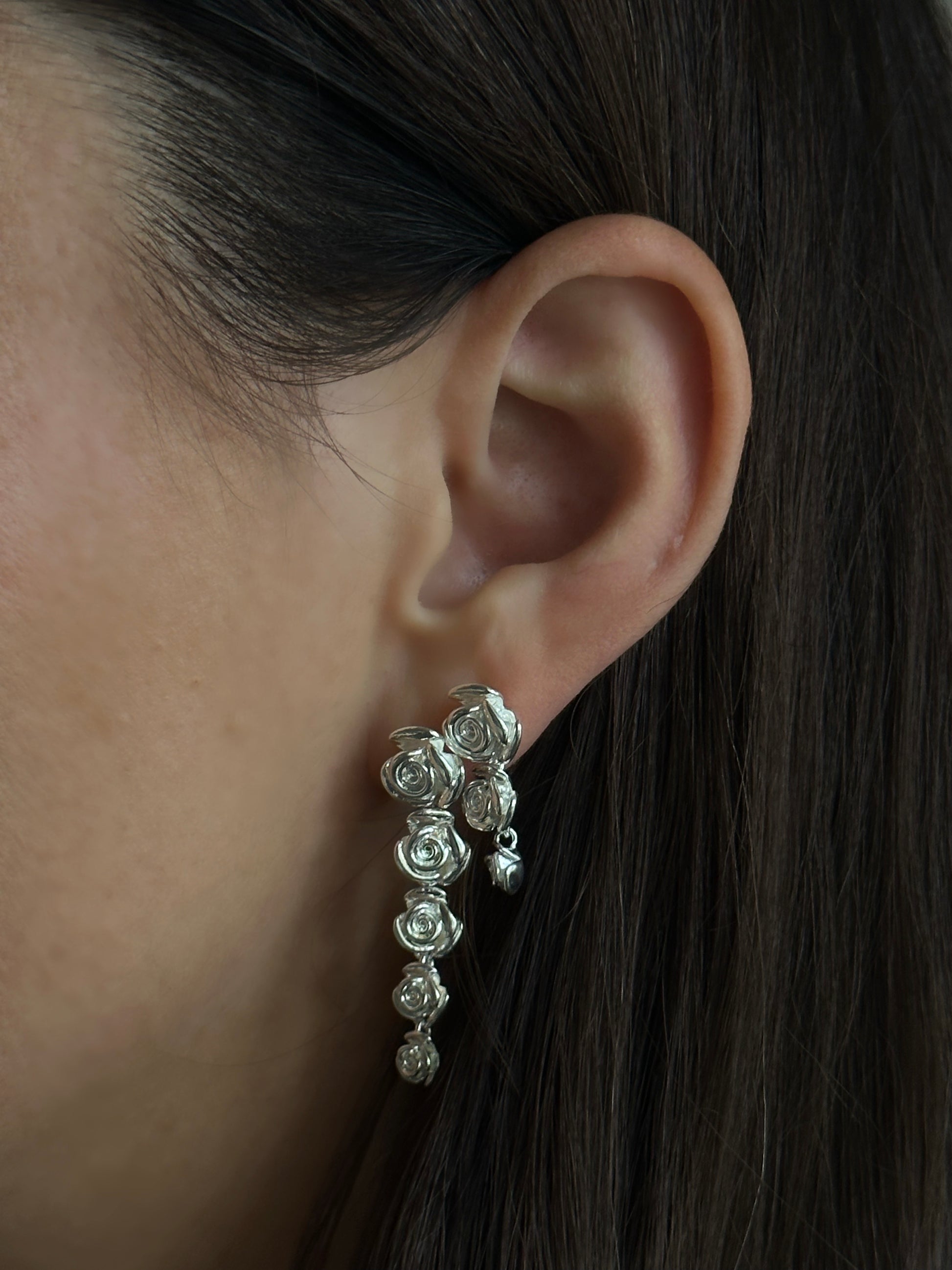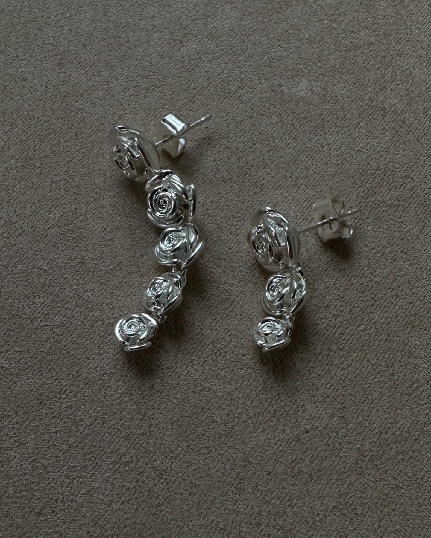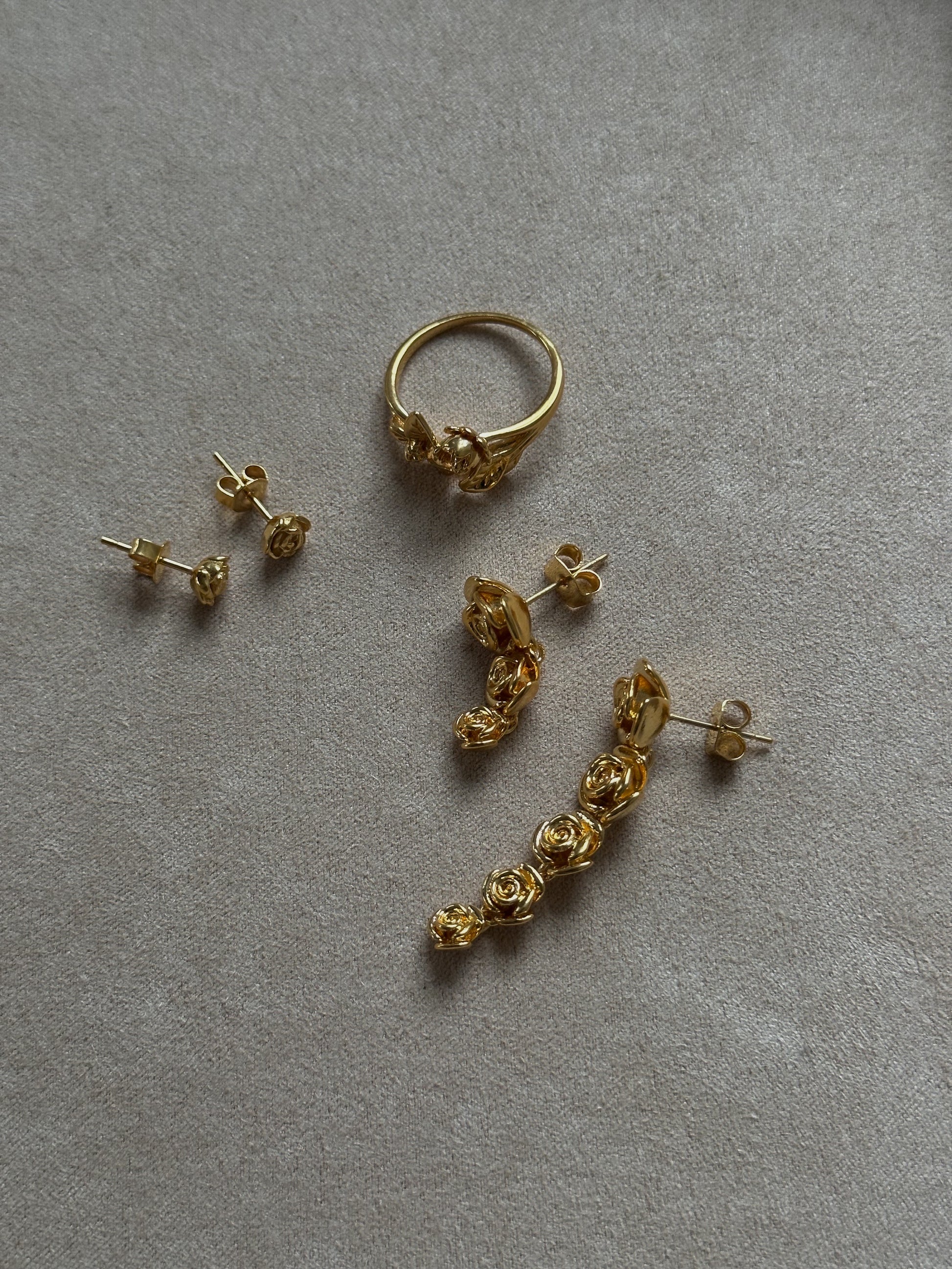 The Rose Triplo Stud is a true botanical marvel, a single earring that encapsulates the charm of not one, but three intricately detailed roses. Comes also as Rose Quintet Stud