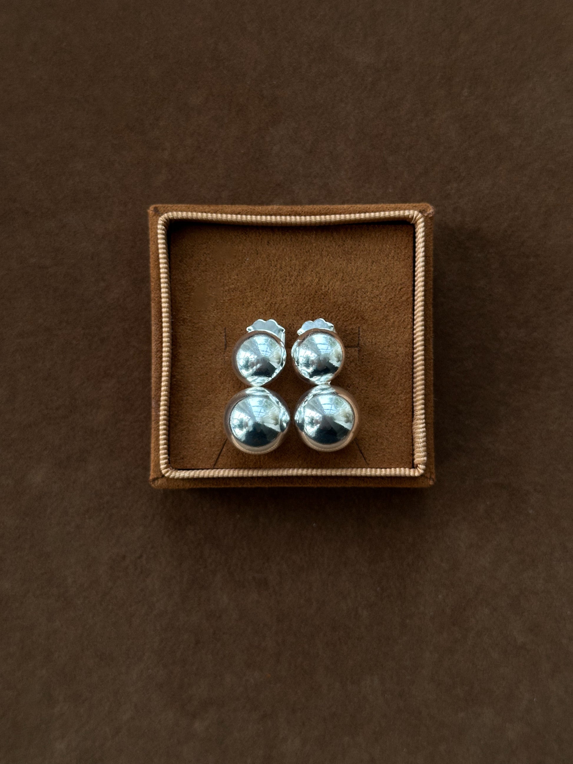 A minimalist stud featuring two matt goldplated or polished silver balls, offering a modern and elegant touch to any look.