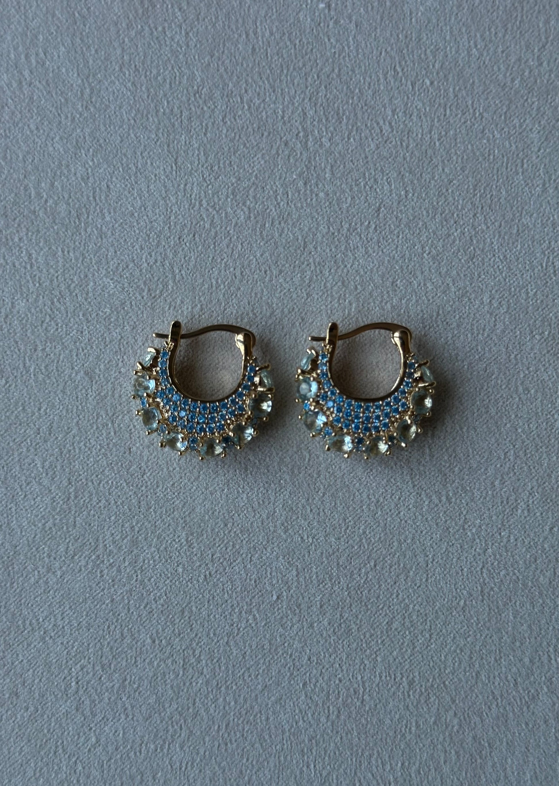 The Zahara Crystal Hoops: A pair of earrings with colorful crystals and tiny studs, perfect for adding a pop of color to any look.