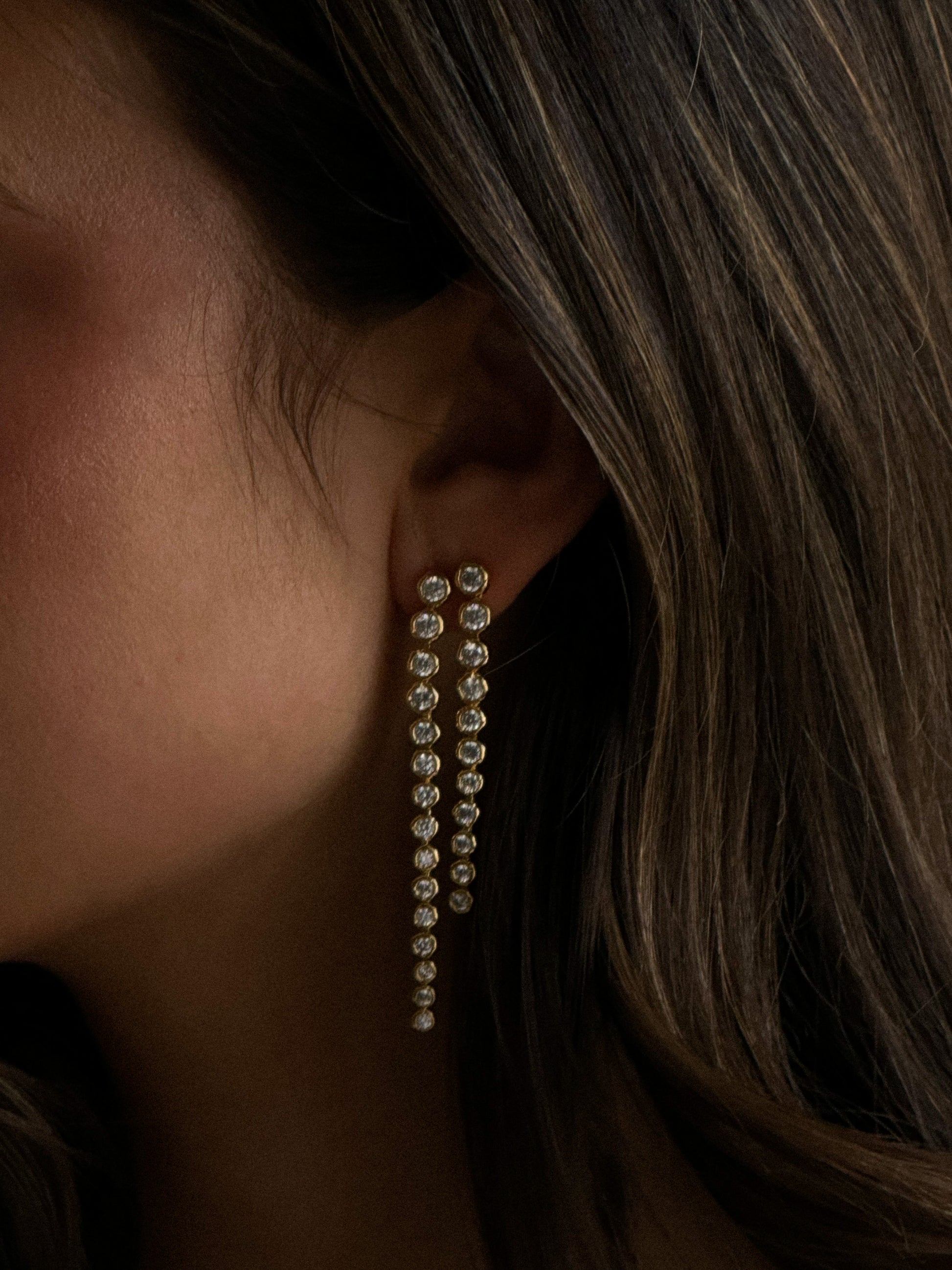 These gorgeous studs are adorned with stunning crystals that capture the light and add a captivating sparkle. With their dazzling beauty, these earrings are sure to make a statement and elevate any look.